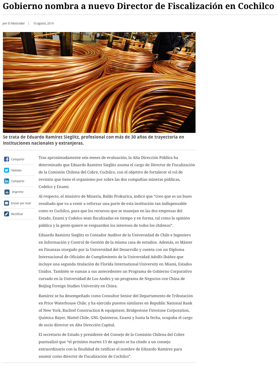 Nombraron a nuevo director de Fiscalización en Cochilco - (reporteminero)