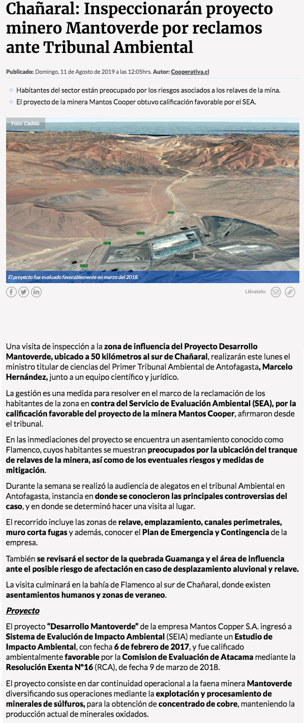 Primer Tribunal Ambiental visitará la zona de influencia del proyecto Mantoverde - (El Diario de Atacama)