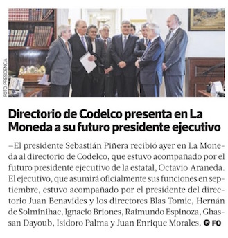 Directorio de Codelco se reúne con Presidente Sebastián Piñera - (El Mercurio de Santiago)
