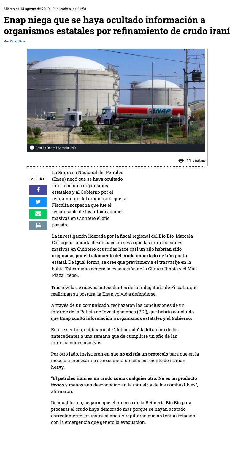 Quintero le sigue penando a ENAP: informe de la PDI apunta a ejecutivos y estatal acusa “obstinación” por tratar de responsabilizarla - (El Mostrador)