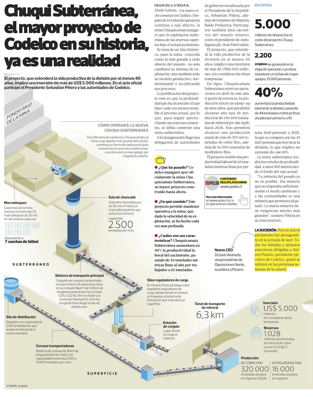 Inauguraron Chuquicamata Subterránea: Cómo es el proyecto de mayor inversión en la historia de Codelco - (emol)