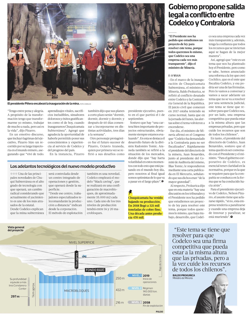Piñera: La subterránea pone a Chile a la vanguardia de la minería mundial - (El Mercurio de Calama)