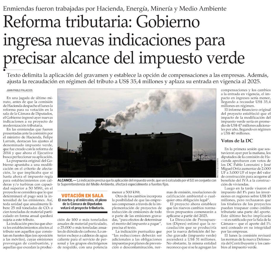 Hacienda ingresa nuevos ajustes al impuesto para fuentes contaminantes - (Diario Financiero)