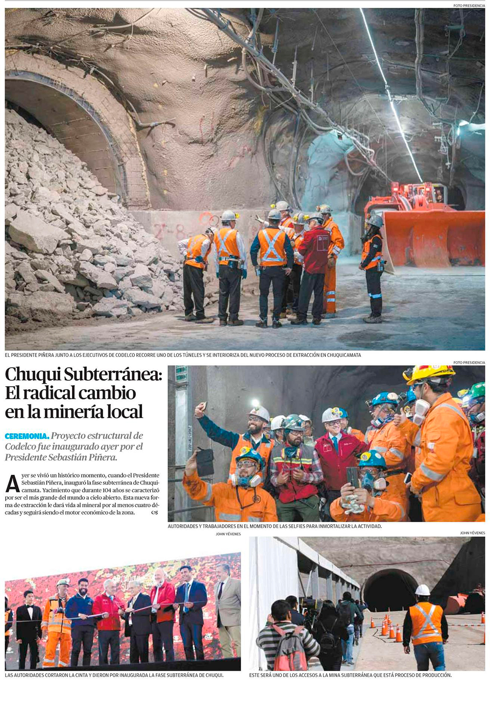 Hito histórico: Piñera inaugura Chuquicamata Subterránea tras 104 años operando a rajo abierto - (biobiochile online)