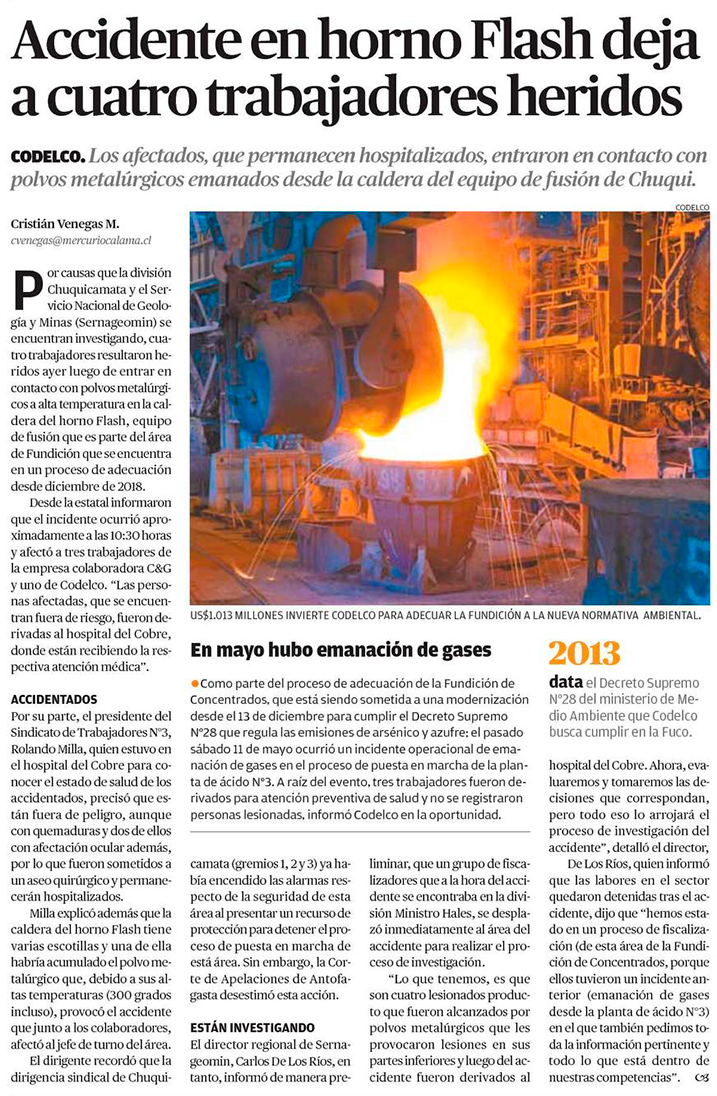 Cuatro trabajadores resultaron quemados por polvo metalúrgico en Chuquicamata - (cooperativa online)