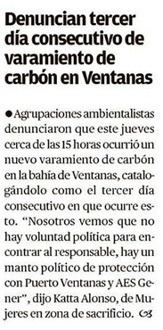 Nuevo varamiento de carbón en Puchuncaví - (Estrella de Valparaíso)