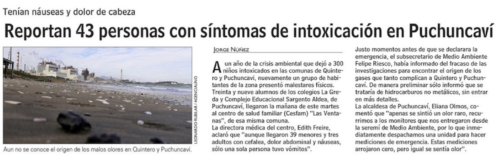 Más de 40 personas afectadas por nube tóxica en Puchuncaví - (Estrella de Valparaíso)