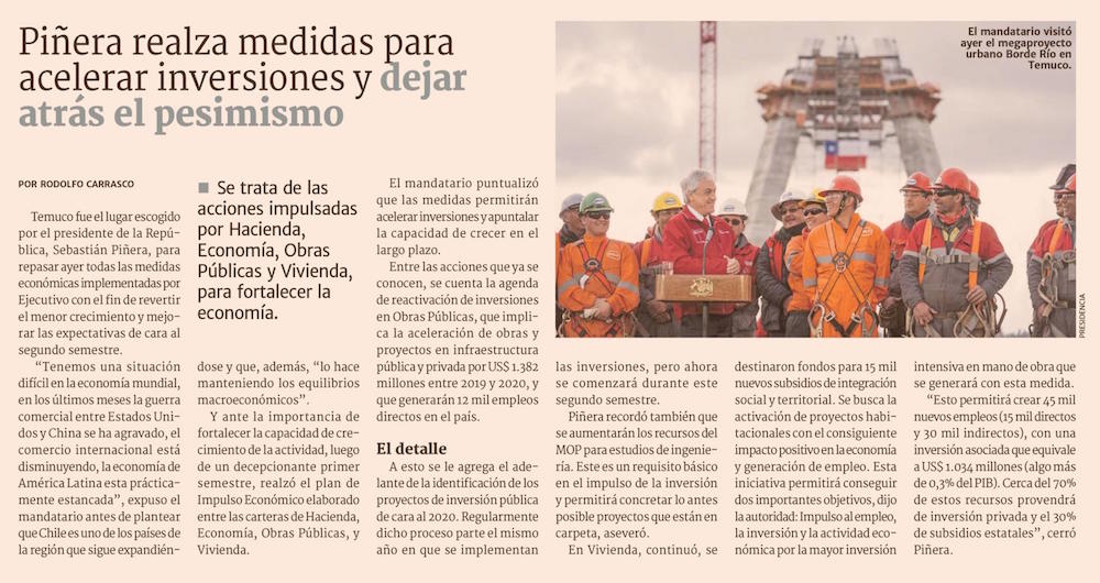 Presidente Piñera lanza agenda de reimpulso económico nacional - (Estrategia)