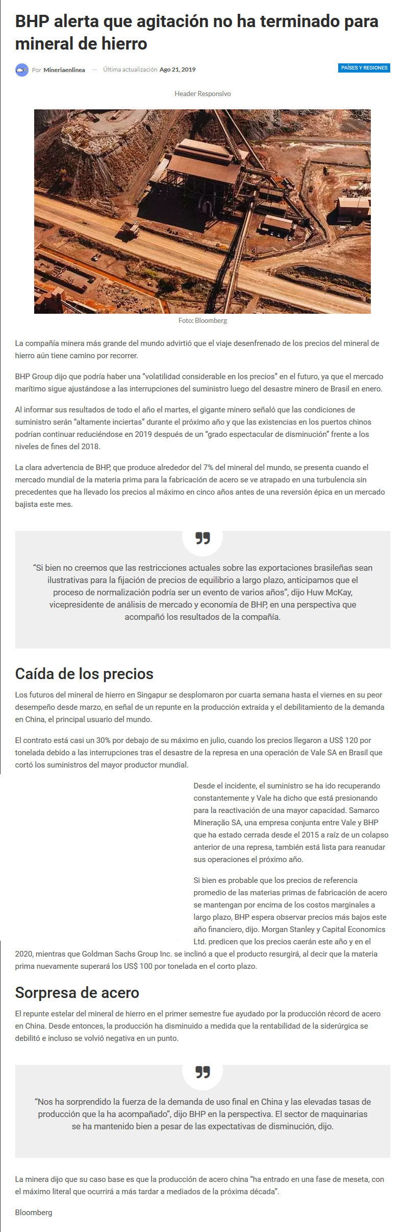 BHP alerta que agitación no ha terminado para mineral de hierro - (Gestión Online (Perú))