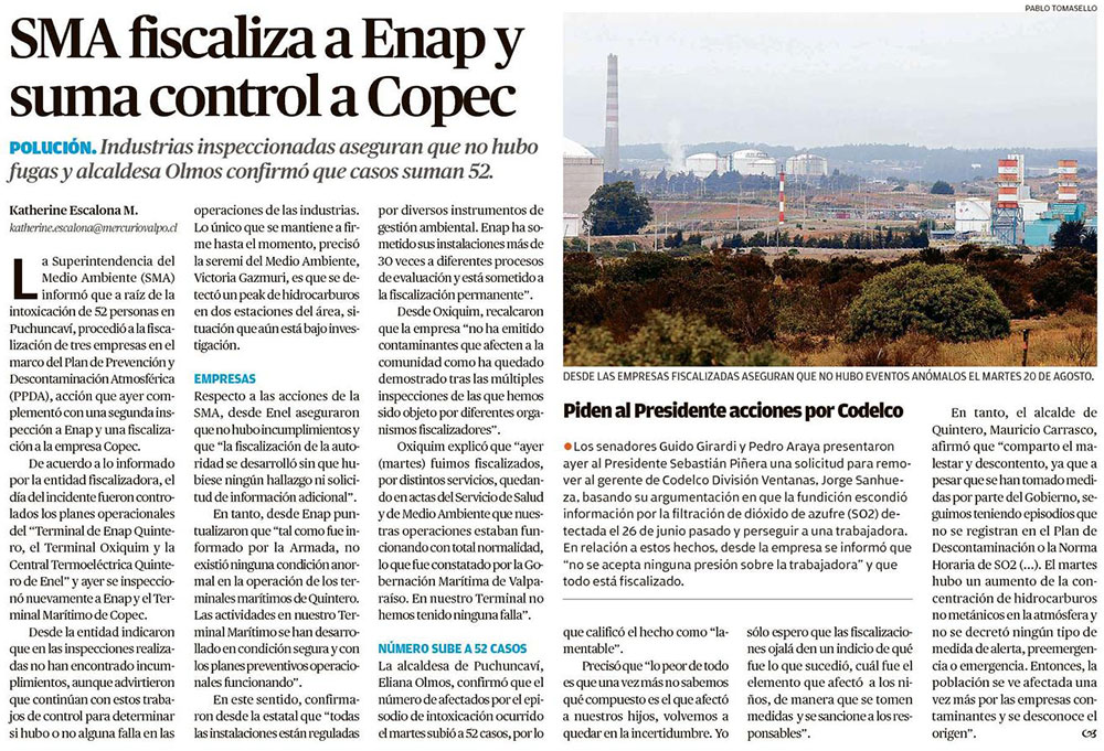 Piden informar el cumplimiento de fallo por polución en Puchuncaví - (El Mercurio de Santiago)