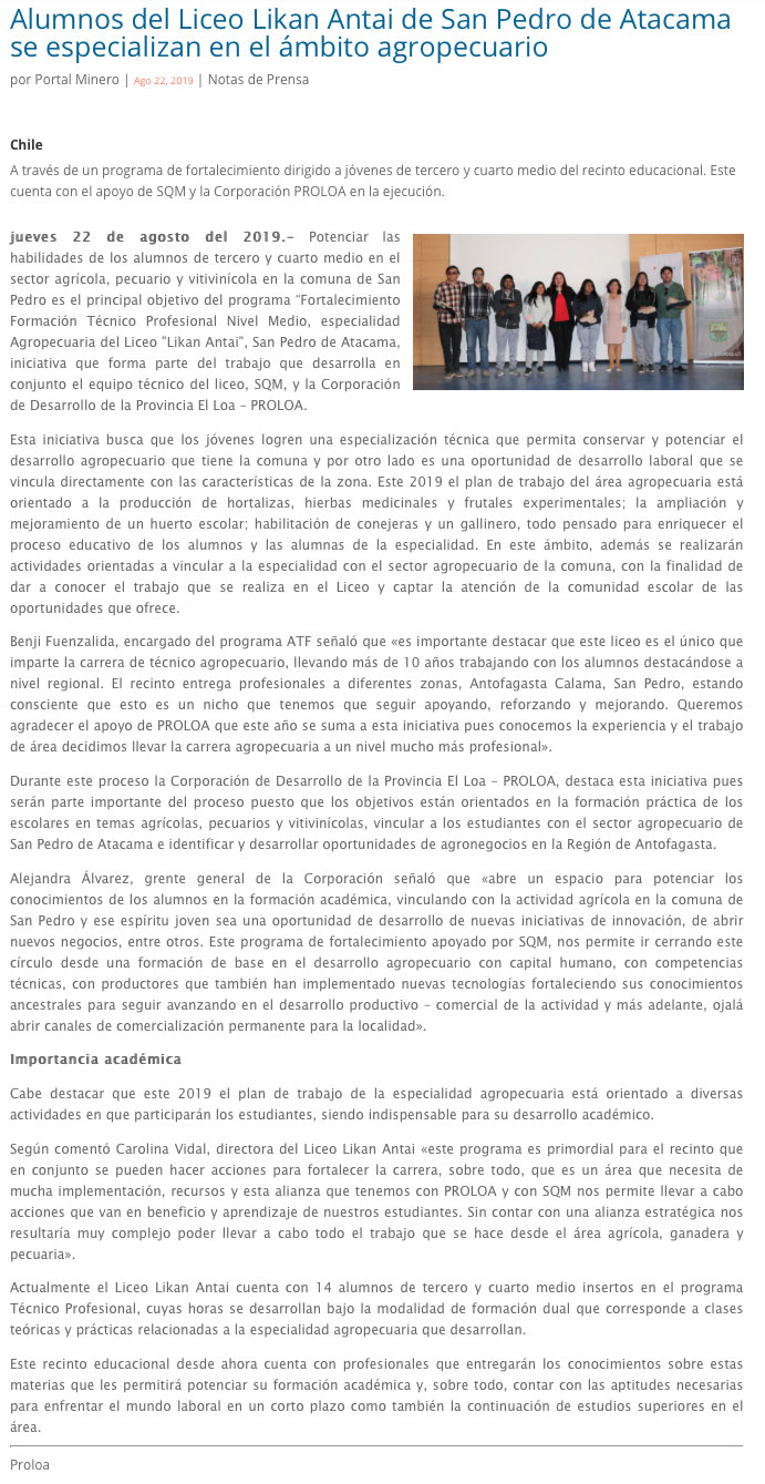 Fortalecen aprendizaje agropecuario en estudiantes - (El Mercurio de Calama)