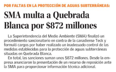 SMA aplica multa por más de $872 millones contra minera por infracciones en región de Tarapacá - (biobiochile online)