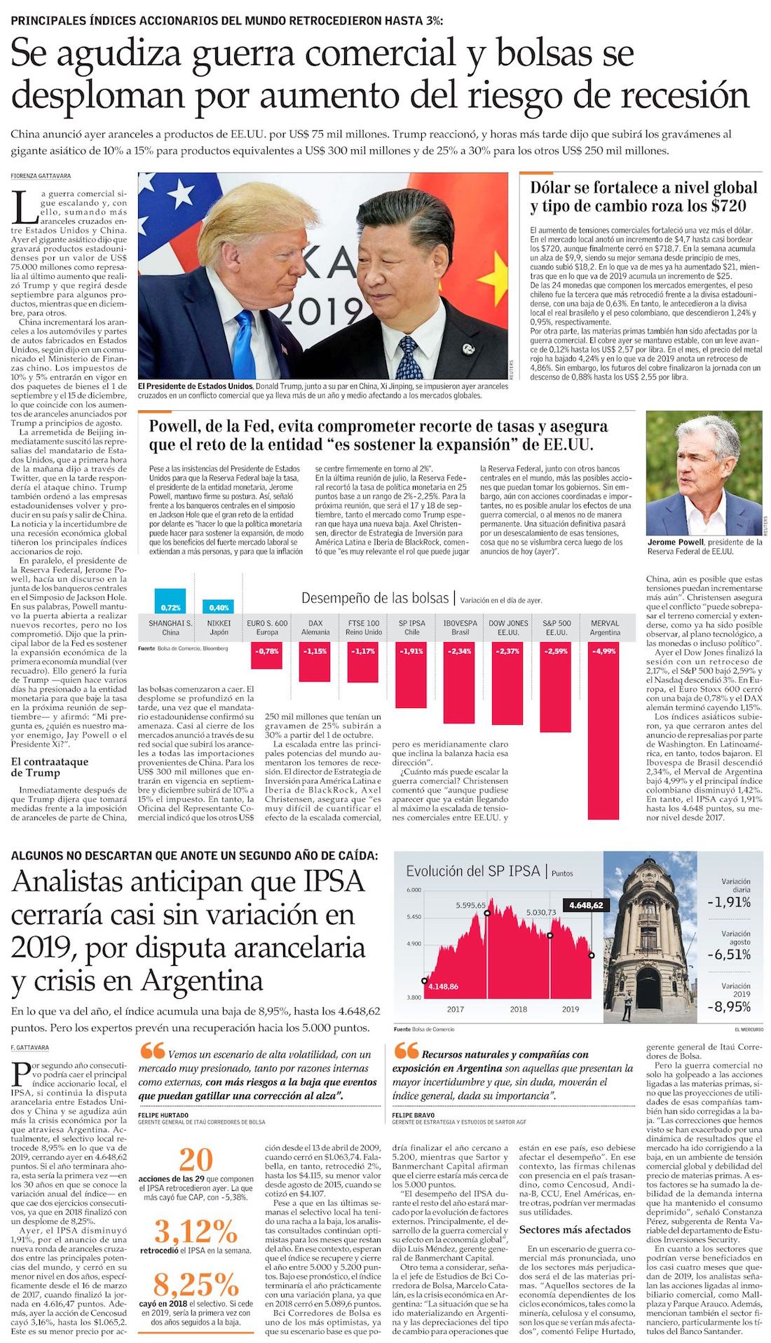 Indicadores muestran una probabilidad más alta de recesión global, y Chile la enfrentaría con mayor deuda y menor espacio fiscal que el 2008 - (El Mercurio de Santiago)