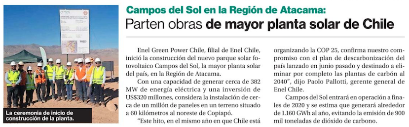 Comienza construcción de parque fotovoltaico 'Campos de Sol' que producirá 382 MW al 2020 - (norteminero online)