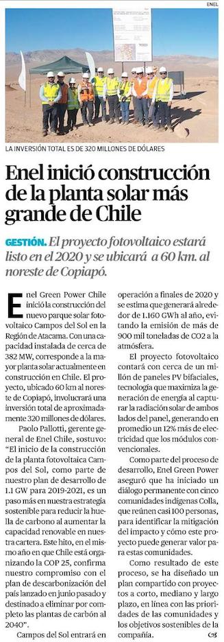 Parten obras de mayor planta solar de Chile - (La Segunda)