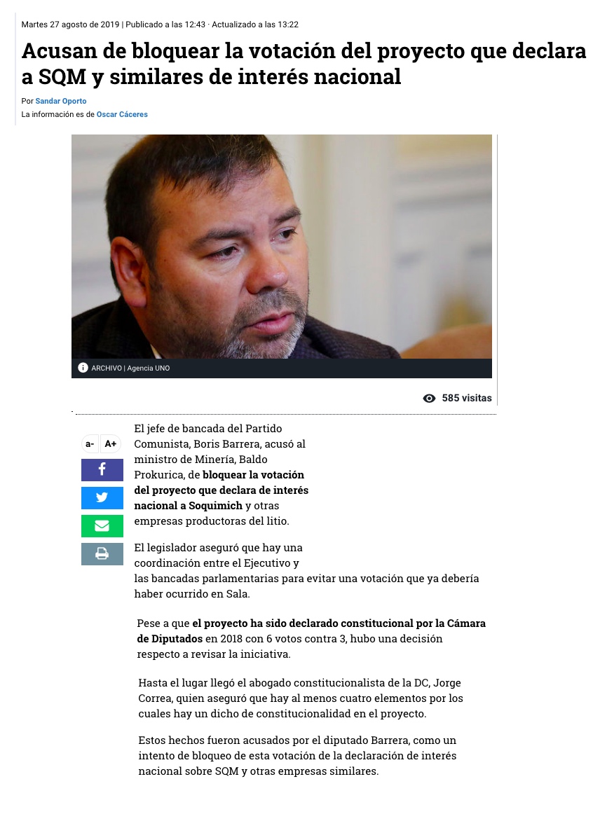 Diputado Barrera emplaza a ministro Prokurica: Que diga por qué bloquea el proyecto que declara al litio como interés nacional - (elciudadano)