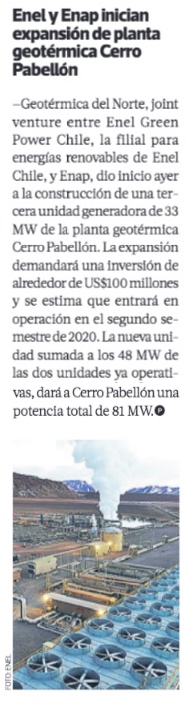 Ampliación de geotérmica Cerro Pabellón considera inversión por US$100 millones - (El Mercurio de Calama)