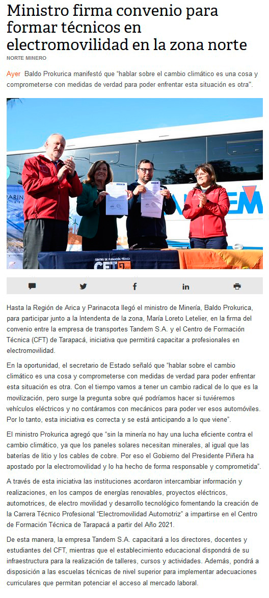 Ministro de Minería destaca firma de convenio que busca preparar técnicos capacitados en vehículos eléctricos - (portalminero)