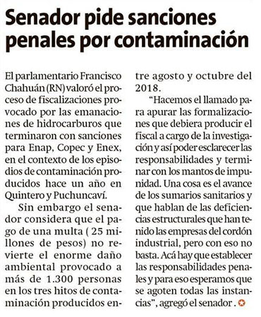 Chahuán pide agilizar formalizaciones a ejecutivos de empresas por polución en Quintero y Puchuncaví - (biobiochile online)