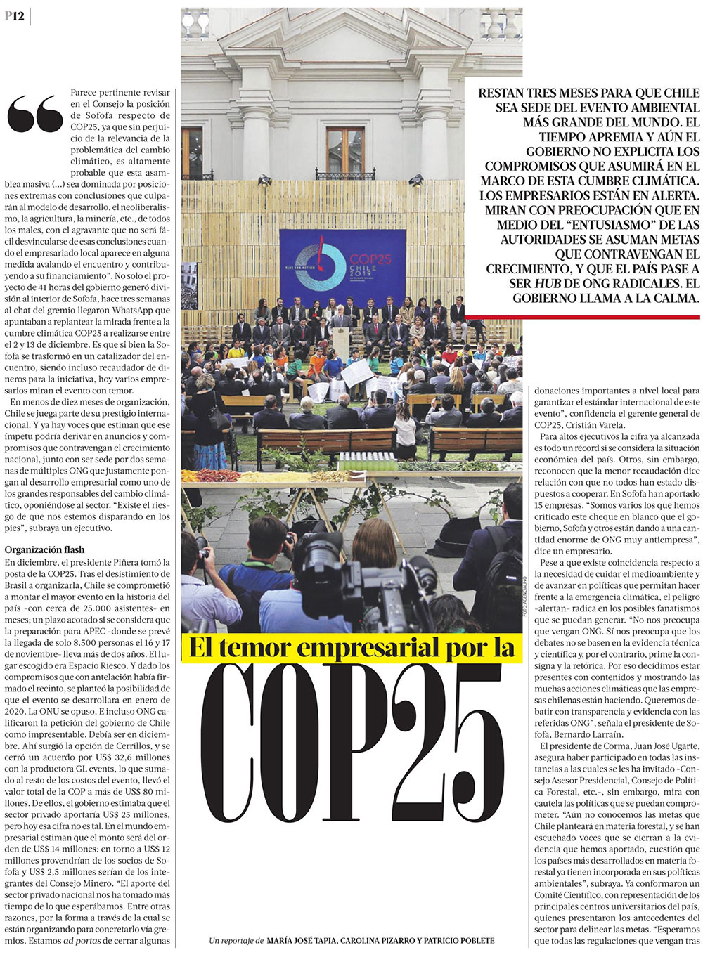 Gobierno y Sofofa defienden COP25: descartan cualquier interés económico e ideológico - (El Mercurio de Santiago)