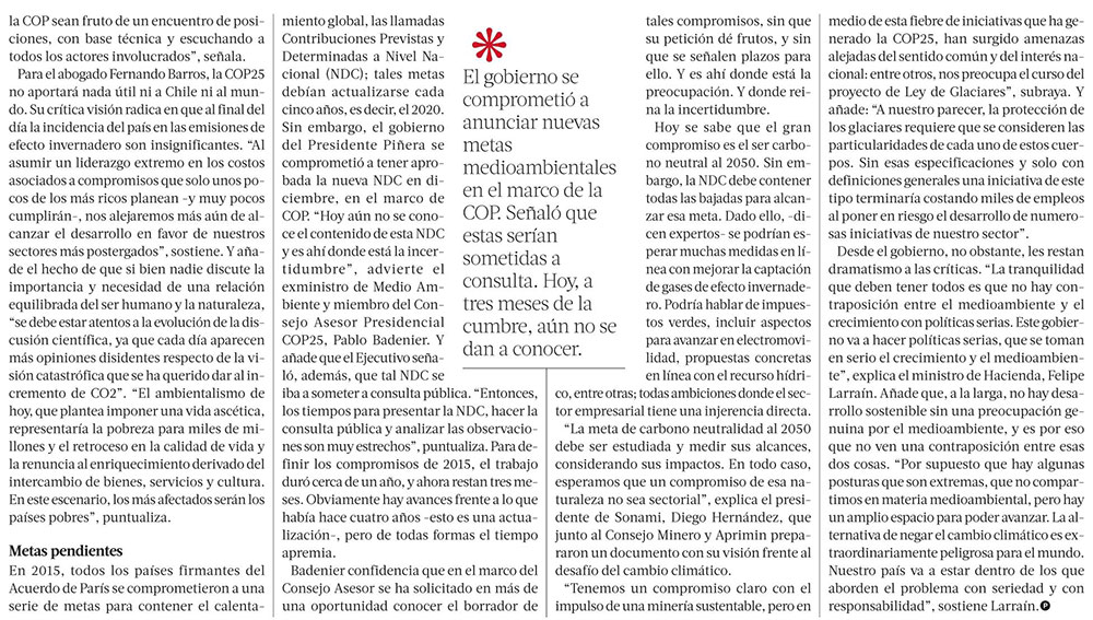 Gobierno y Sofofa defienden COP25: descartan cualquier interés económico e ideológico - (El Mercurio de Santiago)