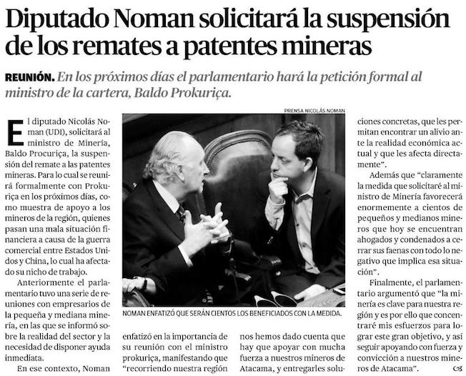 Diputado Noman solicitará a Ministro de Minería la suspensión del remate de patentes mineras - (El Chañarcillo)