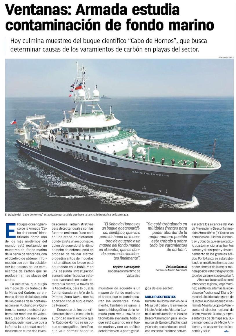 Buque de la Armada llega a bahía de Quintero para estudiar fondo marino y varamientos de carbón - (biobiochile online)