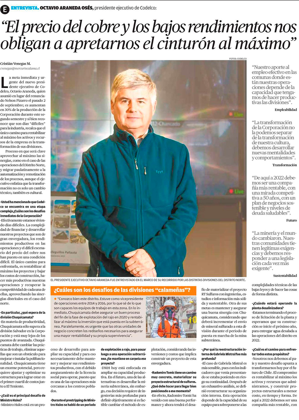 “El precio del cobre y los bajos rendimientos nos obligan a apretarnos el cinturón al máximo” - (El Mercurio de Antofagasta)