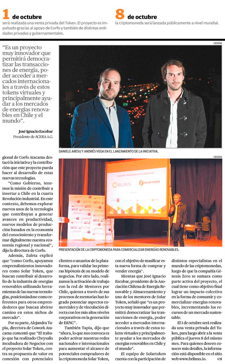 Chilenos lanzan criptomoneda para comercializar energía - (El Mercurio de Santiago)