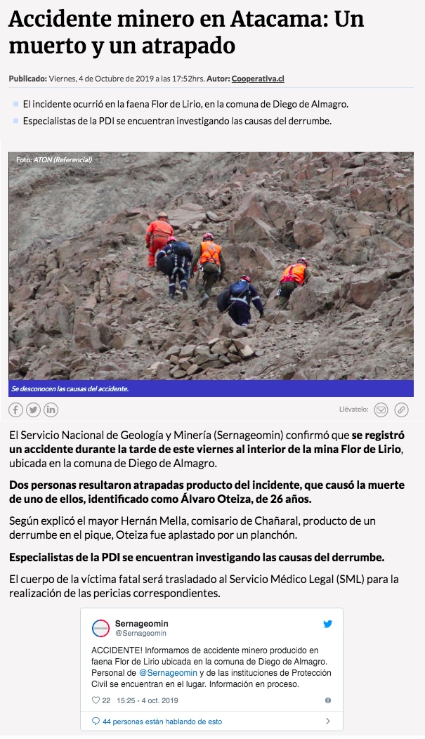 Un muerto deja accidente minero en la región de Atacama - (biobiochile online)