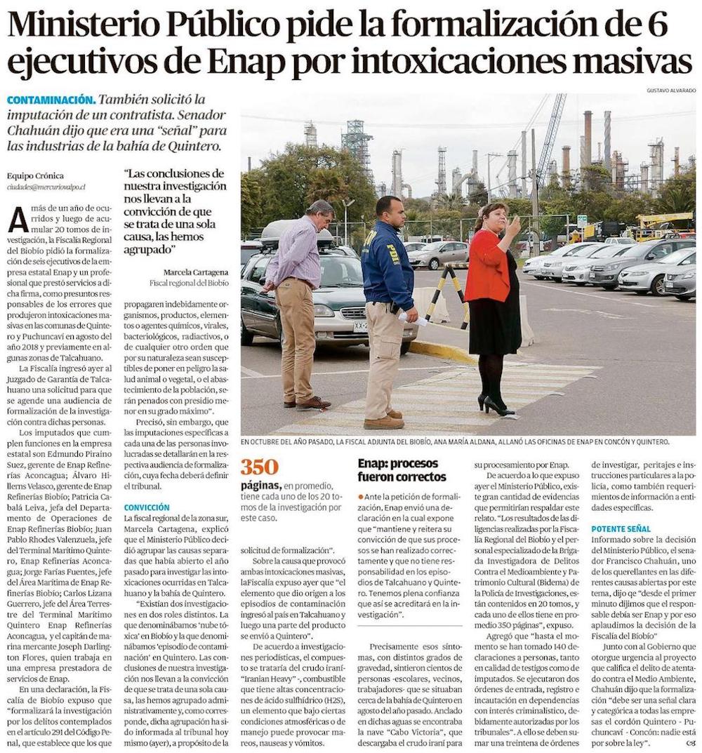 Seis ejecutivos de Enap serán formalizados por delitos medioambientales en Quintero y Talcahuano - (biobiochile online)