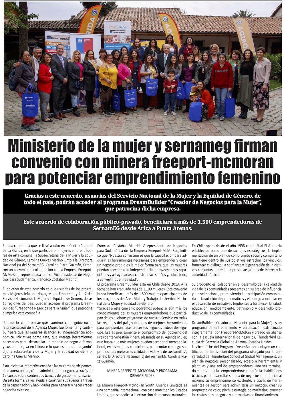 Ministerio de la Mujer, Sernameg y Freeport-McMoran potencian emprendimiento femenino - (elreporterodeiquique)