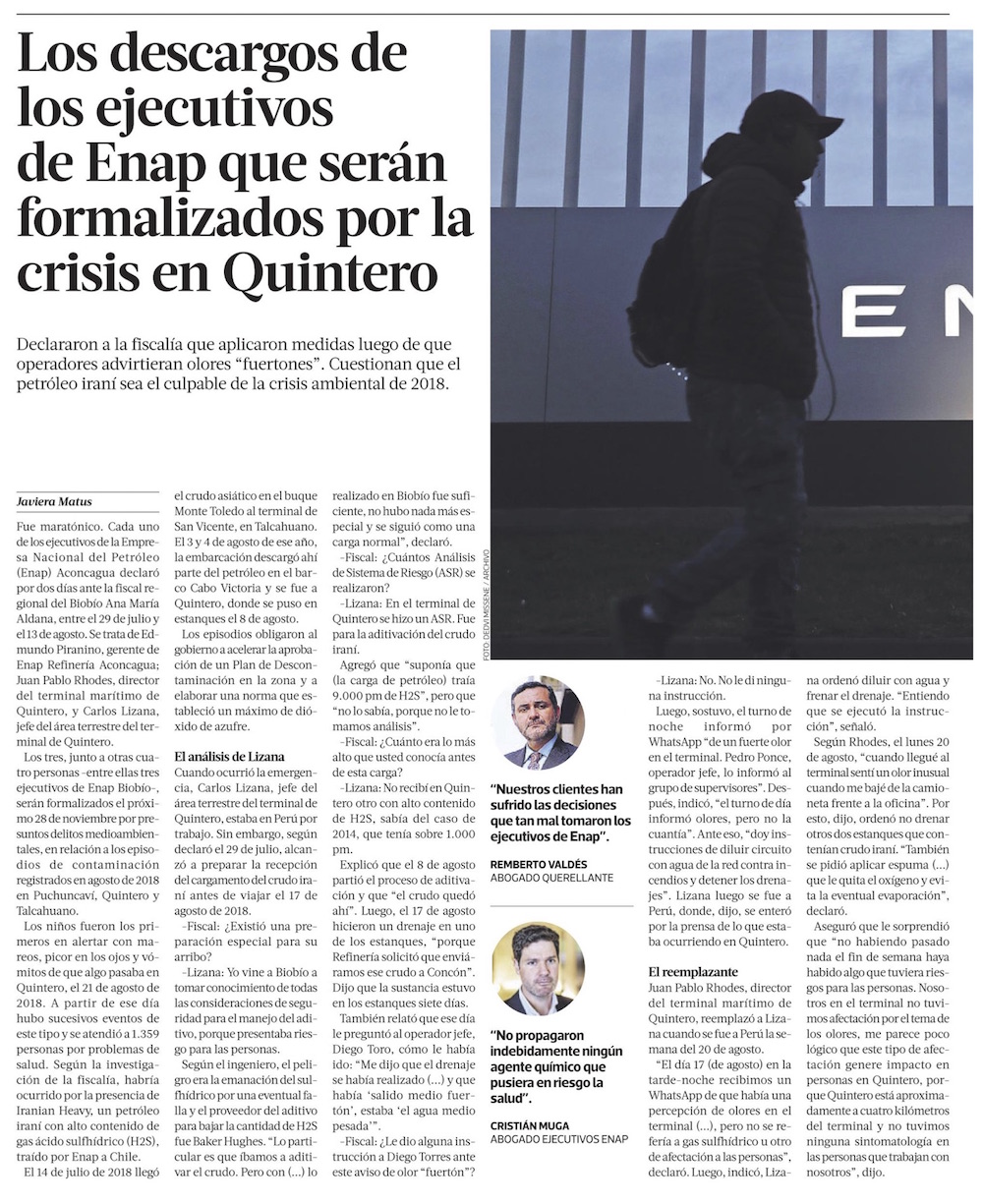 Retrasan formalización de ejecutivos de ENAP porque abogado se va de viaje a Australia - (biobiochile online)