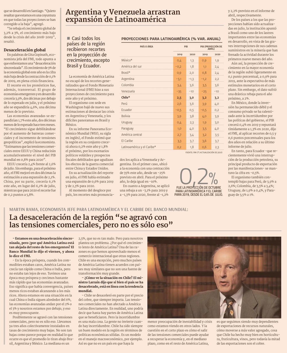 FMI proyecta que Chile crecerá 3,2% promedio durante actual Gobierno mientras el mundo se expandirá 3,4% - (El Mercurio de Santiago)