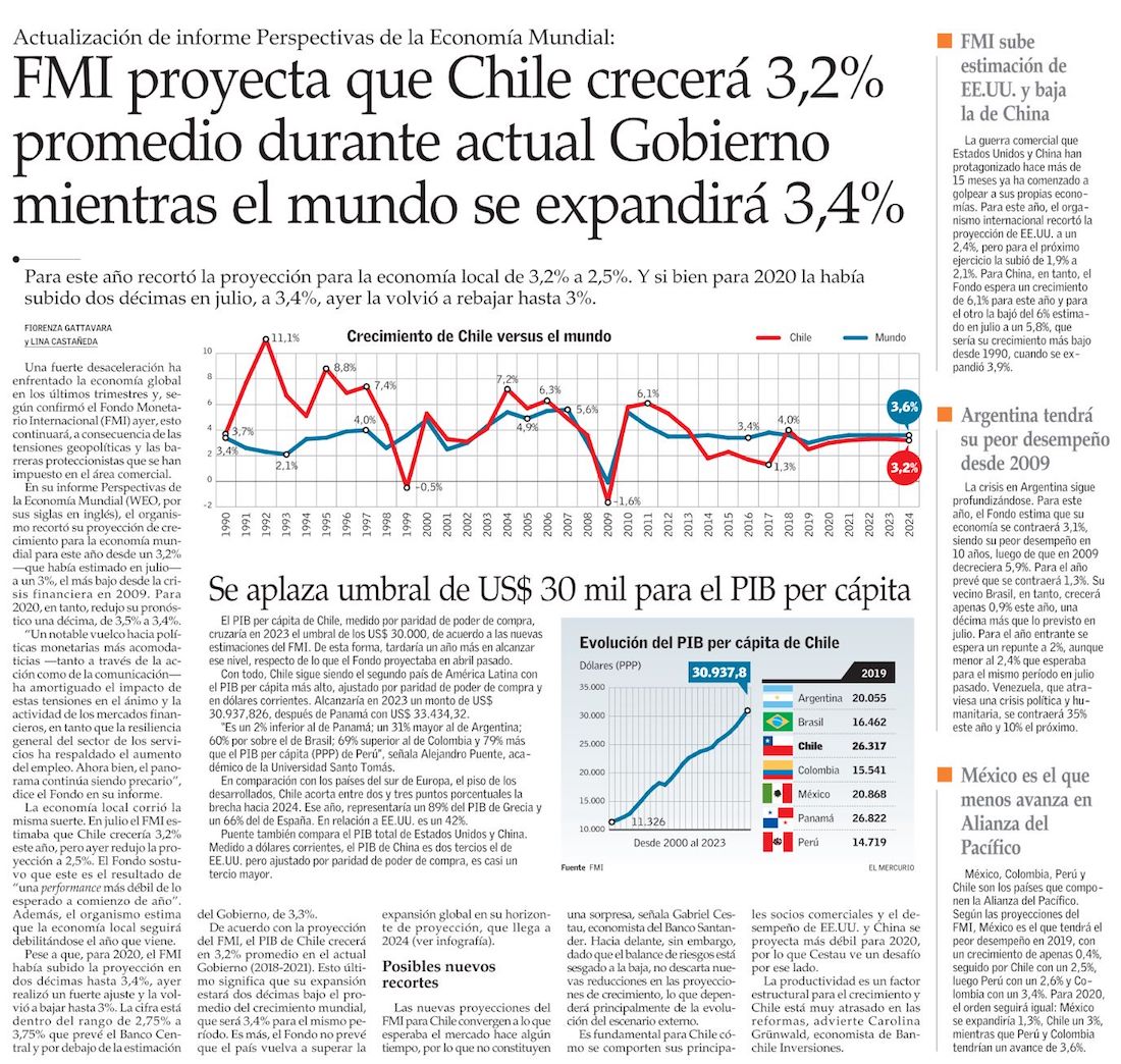 FMI aplica segundo recorte del año a PIB de Chile y alerta que el mundo crecerá a ritmo más lento en 10 años - (Diario Financiero)