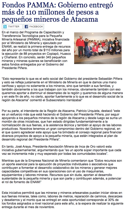 Realizan entrega de fondos PAMMA a pequeños mineros y mineros de Copiapó, Huasco y Chañaral - (Maray Online)