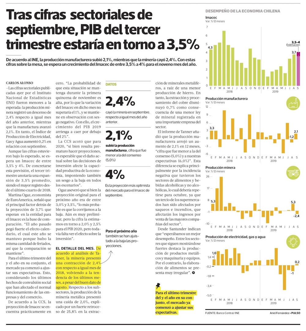 Analistas estiman en torno a 3% la expansión de la actividad en septiembre - (El Mercurio de Santiago)