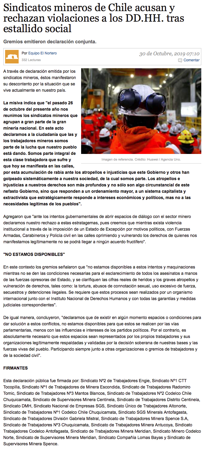 Mineros y familia marcharon en Calama - (elamerica)