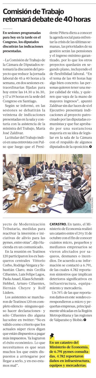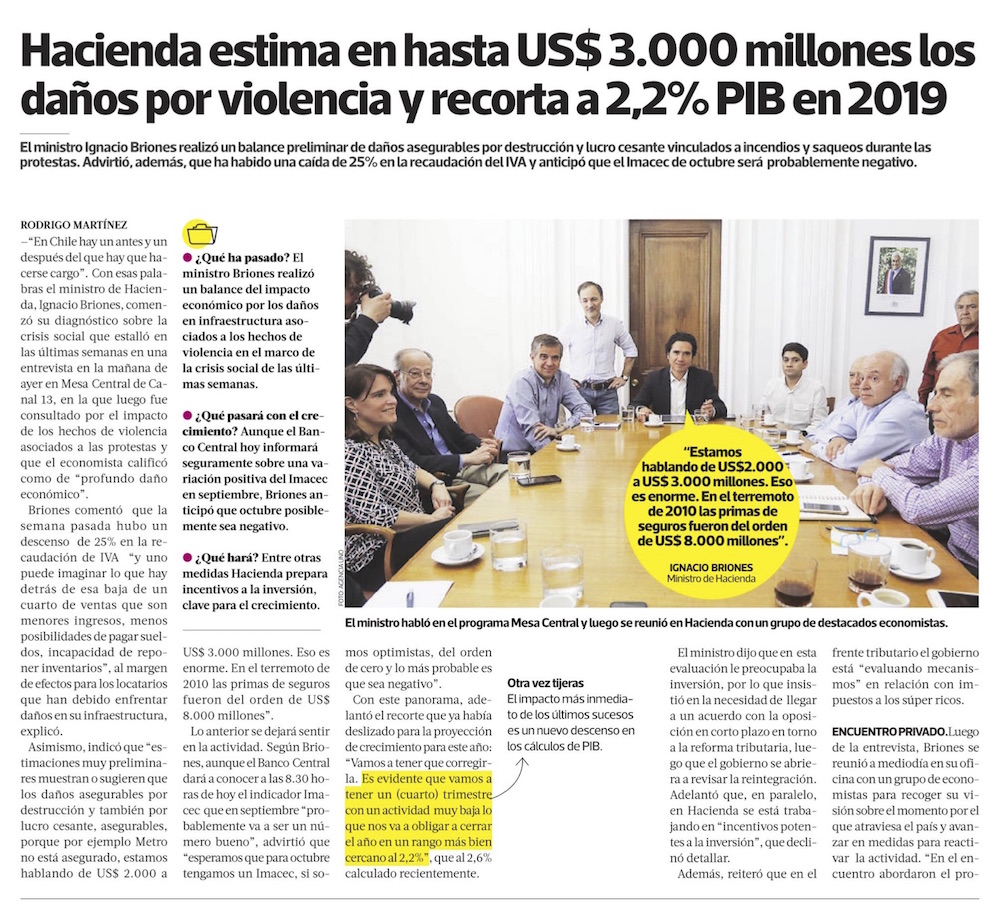 Ministro Briones dice que economía crecerá 2,2%, también impactado por conflicto social - (Diario Financiero)