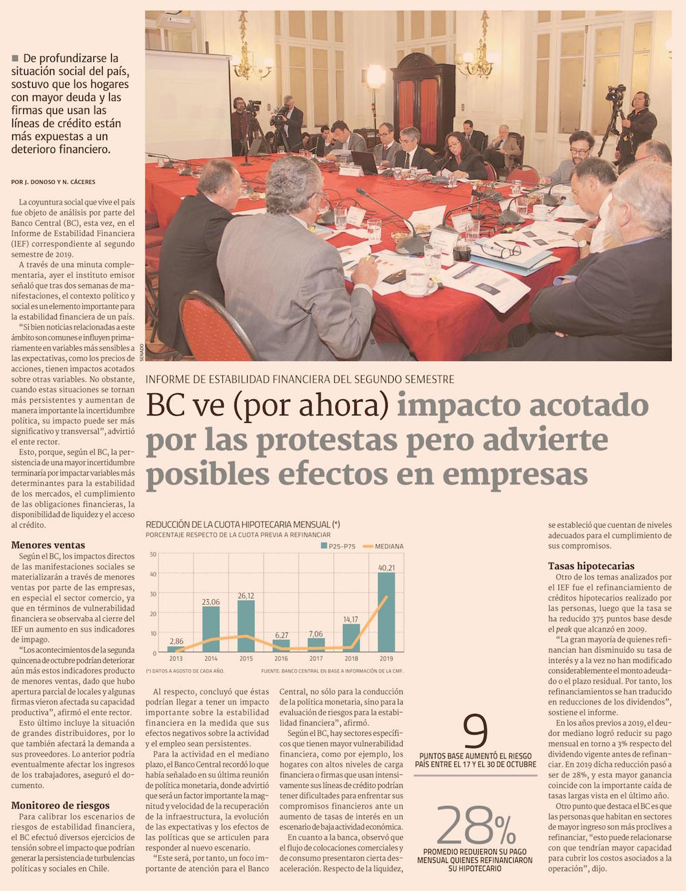 Menores ventas, capacidad de pago e ingresos, los riesgos de la crisis social según el B. Central - (El Mercurio de Santiago)