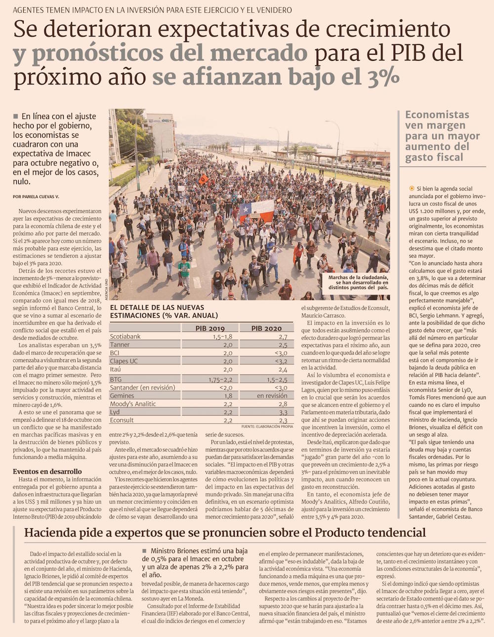 Economistas ven Imacec nulos o negativos en octubre-noviembre y PIB del año cerraría bajo 2% - (Pulso)