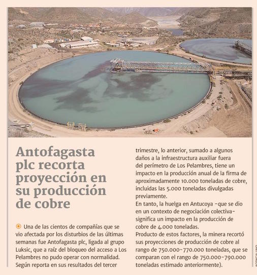 Antofagasta Minerals reduce su estimación de producción para este ejercicio - (El Mercurio de Santiago)