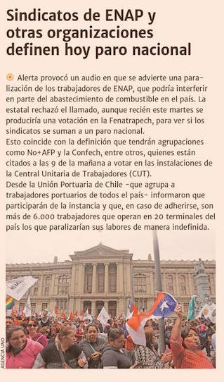 Sindicatos de Enap definirán en asamblea postura ante eventual paro y estatal toma medidas - (Pulso)