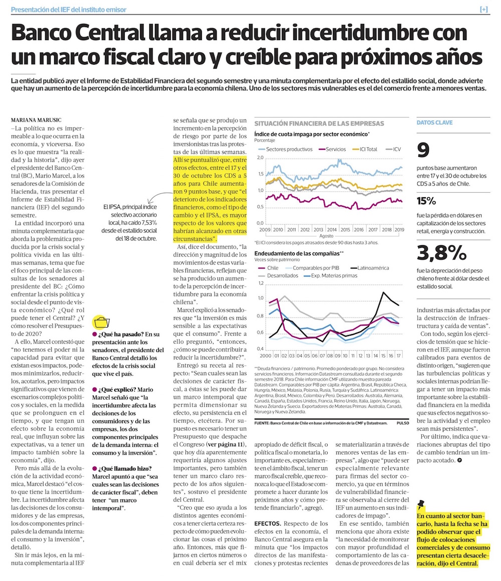 BC ve (por ahora) impacto acotado por las protestas pero advierte posibles efectos en empresas - (Diario Financiero)