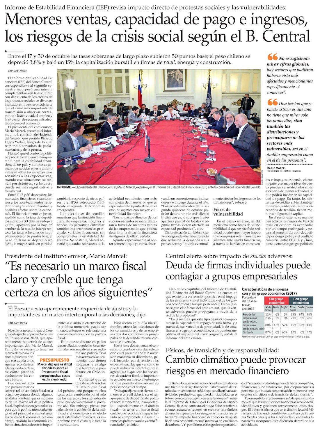 BC ve (por ahora) impacto acotado por las protestas pero advierte posibles efectos en empresas - (Diario Financiero)