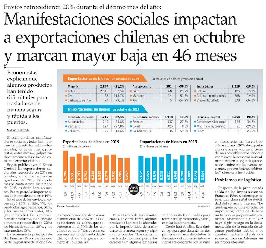 El conflicto social golpeó el rubro del comercio exterior en octubre - (Diario Financiero)