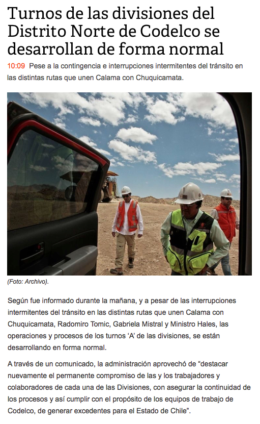 A pesar del paro nacional, las principales mineras de Codelco Norte operan al 100% - (elamerica)