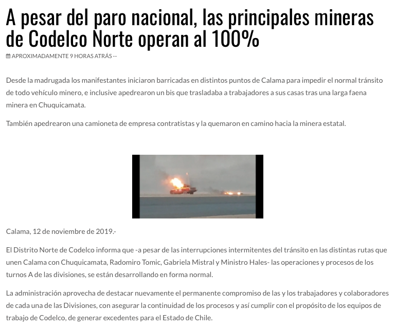 Turnos de las divisiones del Distrito Norte de Codelco se desarrollan de forma normal - (norteminero online)