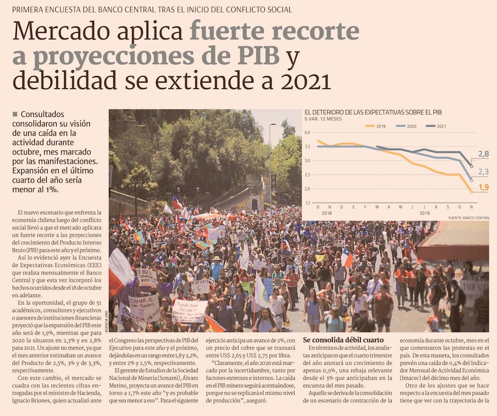 Sectores productivos bajan proyecciones para 2020 - (El Mercurio de Santiago)