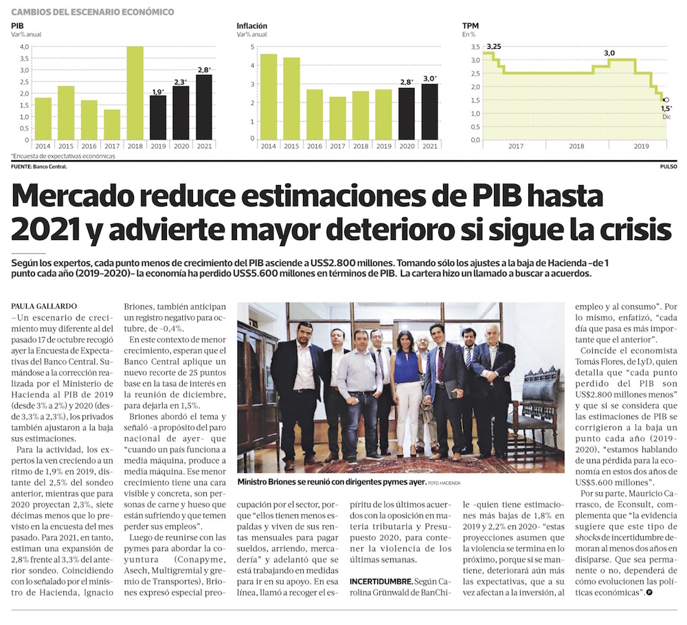 Sectores productivos bajan proyecciones para 2020 - (El Mercurio de Santiago)